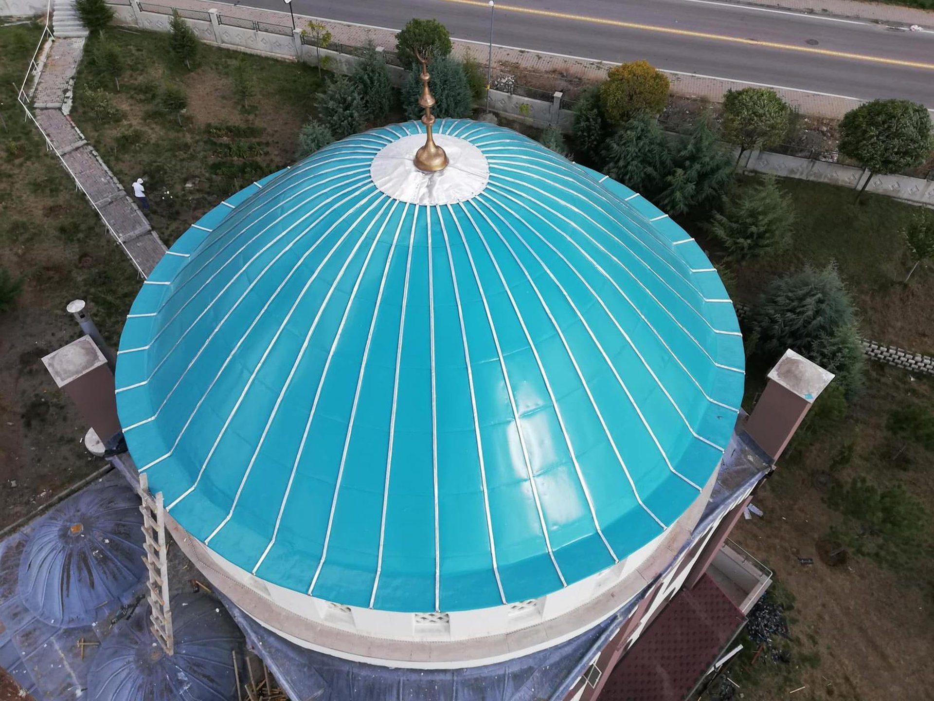 Bu projede kubbe kaplama uygulaması, birleşim detayları ve su tahliye noktaları titizlikle ele alınmıştır. Yüzey hazırlığı sonrası projeye uygun malzeme seçimi yapılmış, montaj ve son kontroller tamamlanarak zamanında teslim edilmiştir.